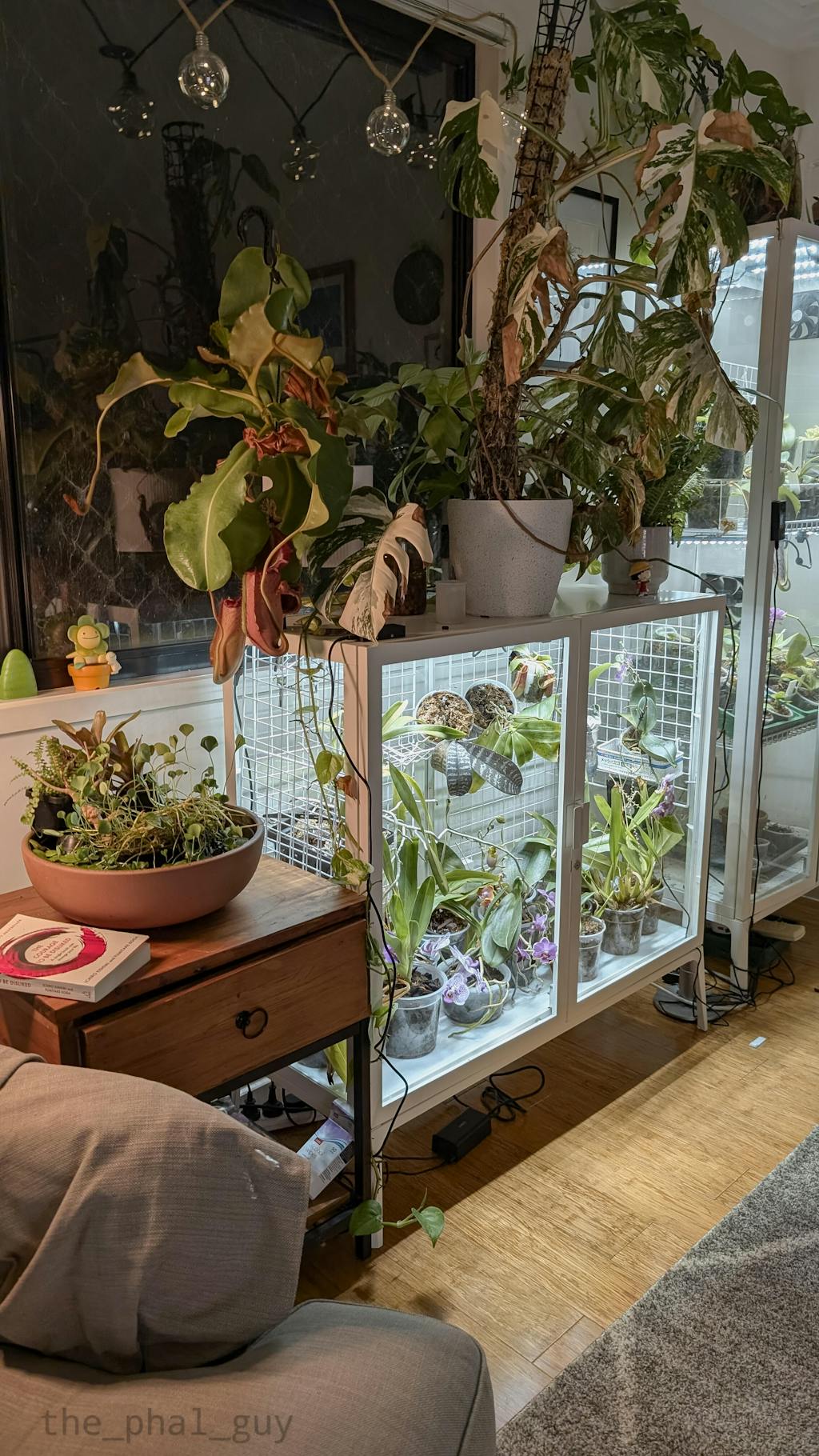 Great to see that the cords between the lights are long enough to reach top and bottom shelf. wonderful setup.