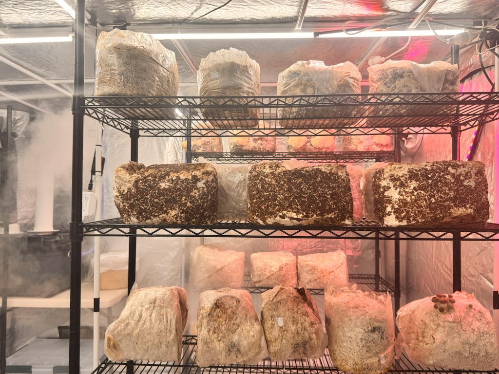 I threw in a photo of one of our 1,000 litre fridges (we have three) to show what weekly capacity these units need to be able to manage. There's about sixty to 80 blocks per fridge, depending on the mushroom substrate we are using and up to 50 blocks per tent per week.